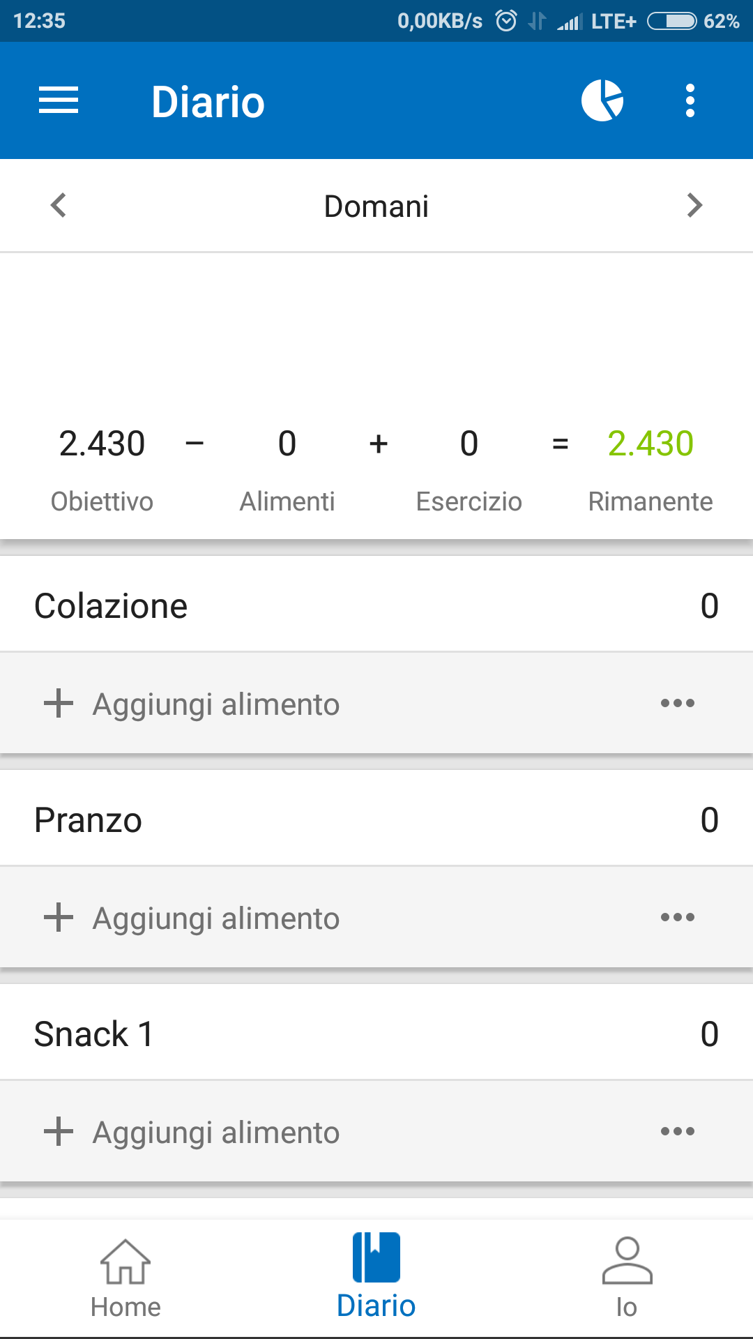 Se per te invece risulta impossibile rinunciare di punto in bianco a cibi densi di calorie come pane, pasta o pizza, allora devi passare alla strada numero 2 prima di mollare tutto e far danni. In cosa consiste questa seconda strada? Lo vediamo subito, seguimi.. Strada Numero 2. La seconda strada è quella più complicata all'inizio. Lo è perchè prevede contare, misurare e quantificare tutto quello che mangi. Oggi la tecnologia ci viene in aiuto e facilita un po' le cose. Esistono infatti applicazioni per i nuovi telefonini che tengono traccia di tutto. La più famosa e completa si chiama MyFitnessPal. Trovi la schermata principale qui sotto: