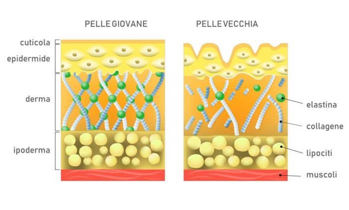 Si tratta di un'antica proteina evolutiva coinvolta nel legame delle cellule degli animali più semplici, come le spugne, così come dell'uomo (4). Questi "tubi" di collagene sono sistemati a "X" in modo da formare una struttura rigida. Grazie alla presenza di Elastina e Cheratina morbida, la struttura "Tubolare" e rigida del collagene diventa elastica. A differenza del collagene, l'elastina può raddoppiare la sua lunghezza (5). Con l'invecchiamento e la sedentarietà però succede che il collagene aumenta di molto la sua presenza rispetto a Elastina e Cheratina. E questo spiega la riduzione di elasticità muscolare che si verifica proprio a partire dai 40 anni nei soggetti sedentari. La maggior concentrazione per così dire di collagene aumenta la rigidità di muscoli, tendini e legamenti. In questa condizione diventa più difficile contrarre/rilassare i muscoli. Un'altra complicazione è l'eccessivo intrecciamento di questi "tubi" di collagene (5). Il Collagene e la struttura a tubi intrecciati che hai visto nella figura "Pelle giovane" servono a promuovere la forza e l'elasticità dei tessuti. Mentre i troppi legami incrociati e caotici che vedi nella figura "Pelle vecchia" fanno si che là ci sia rigidità e meno forza. Un altro cambiamento legato all'età è la diminuzione dell'idratazione. Ad esempio prendi la pelle di un bambino. Se provi a pizzicagli la mano, nel bambino la pelle torna immediatamente nella posizione originaria. Con un anziano, puoi facilmente vedere e misurare il lento ritorno del pelle pizzicata nella sua posizione originale. La persona anziana è più disidratata e la pelle con predominanza di collagene manca dell'elasticità rispetto a quella del bambino. Lo stesso si verifica non soltanto con la pelle, ma anche con muscoli, tendini, legamenti e altri tessuti. Ma veniamo alle buone notizie.. Sia l'esperienza sul campo che la ricerca dimostrano che è possibile riottenere e mantenere una buona elasticità muscolare. Anche dopo i 40, 50 o 70 anni. A patto di praticare attività fisica e allungamento muscolare in modo costante e regolare.