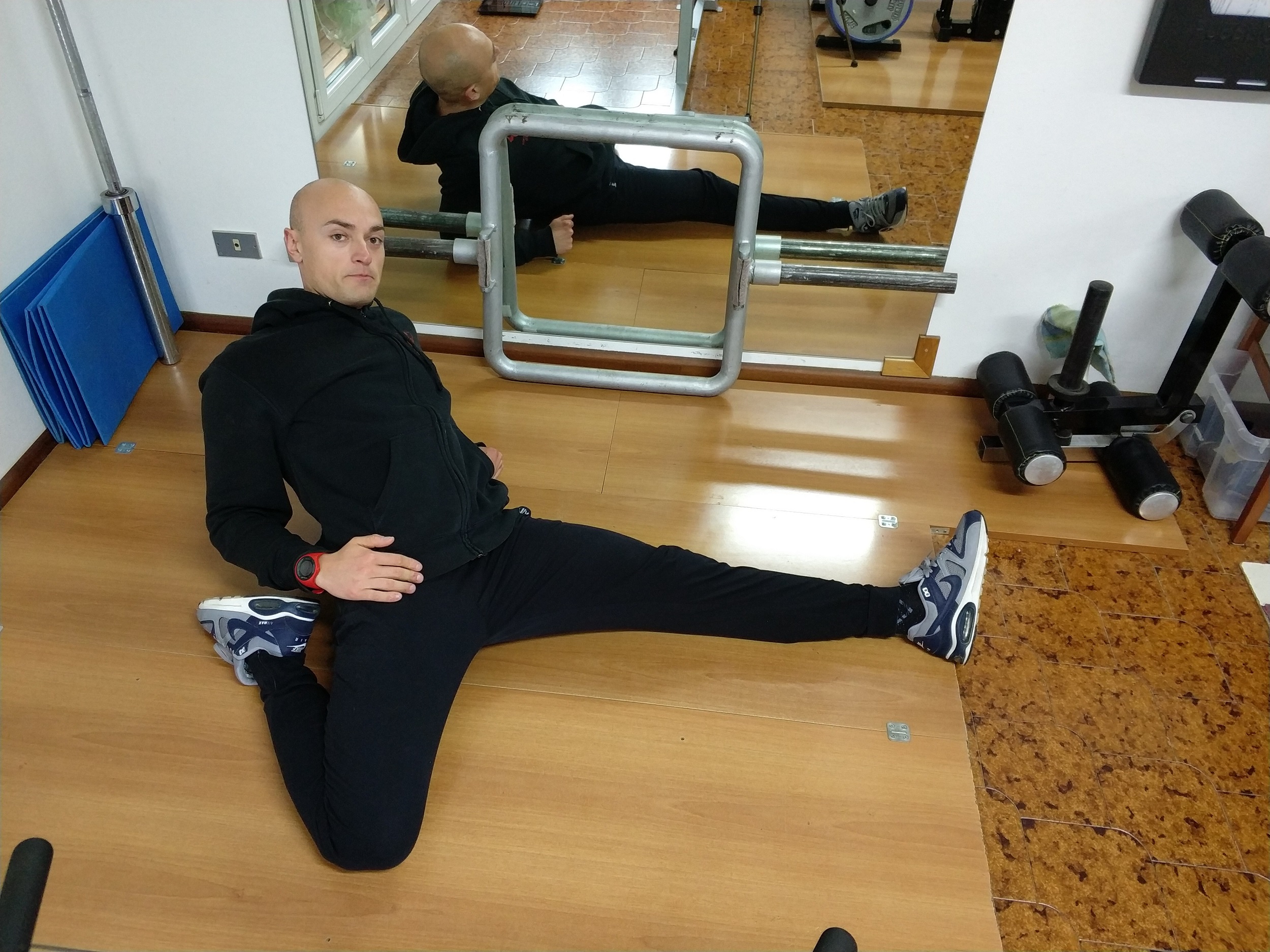 - STRETCHING DA SEDUTO UNA GAMBA ALLA VOLTA