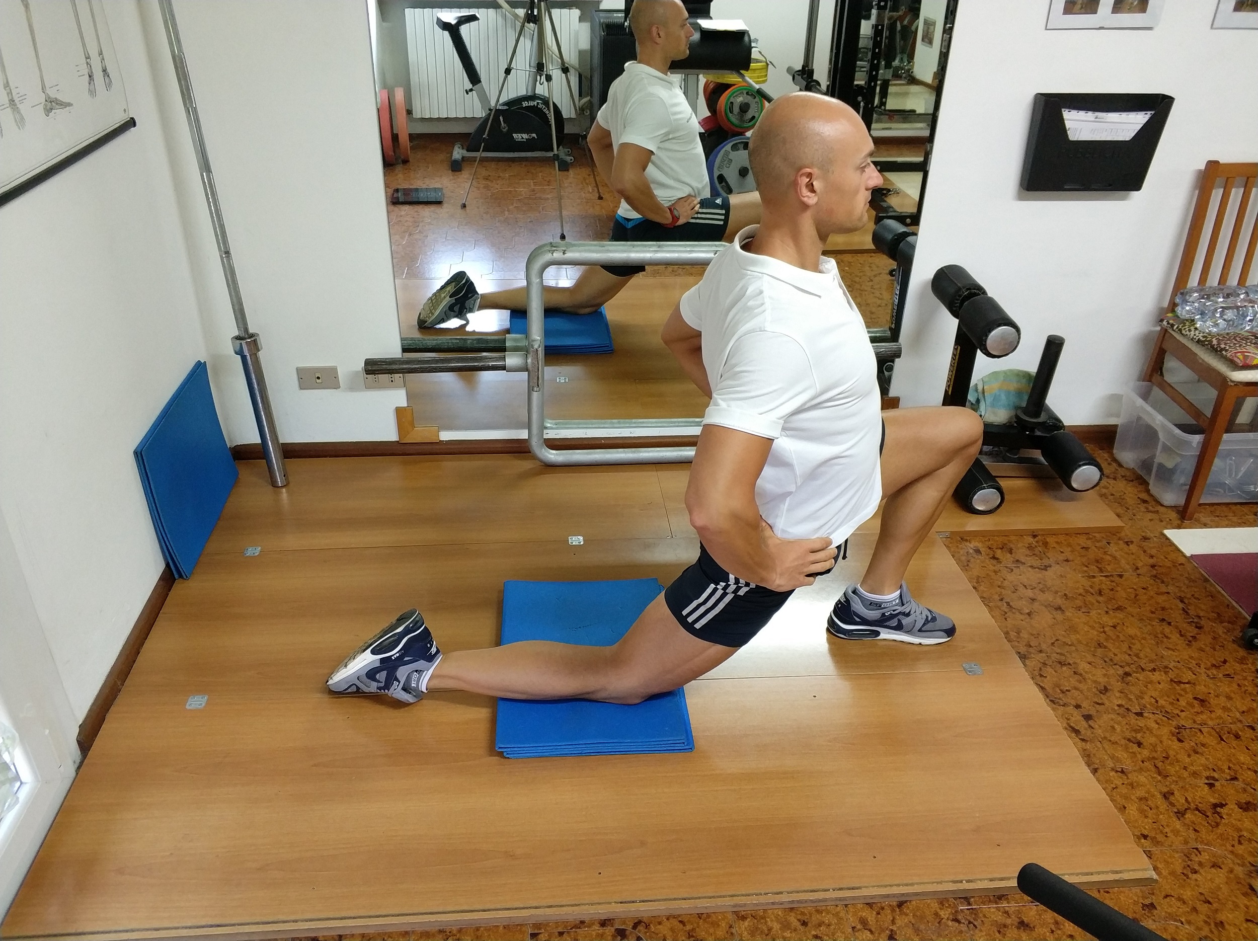 - STRETCHING FLESSORI DELL'ANCA CON GINOCCHIO APPOGGIATO